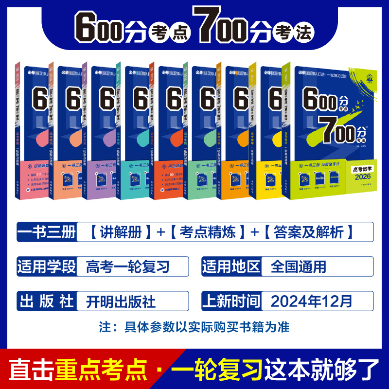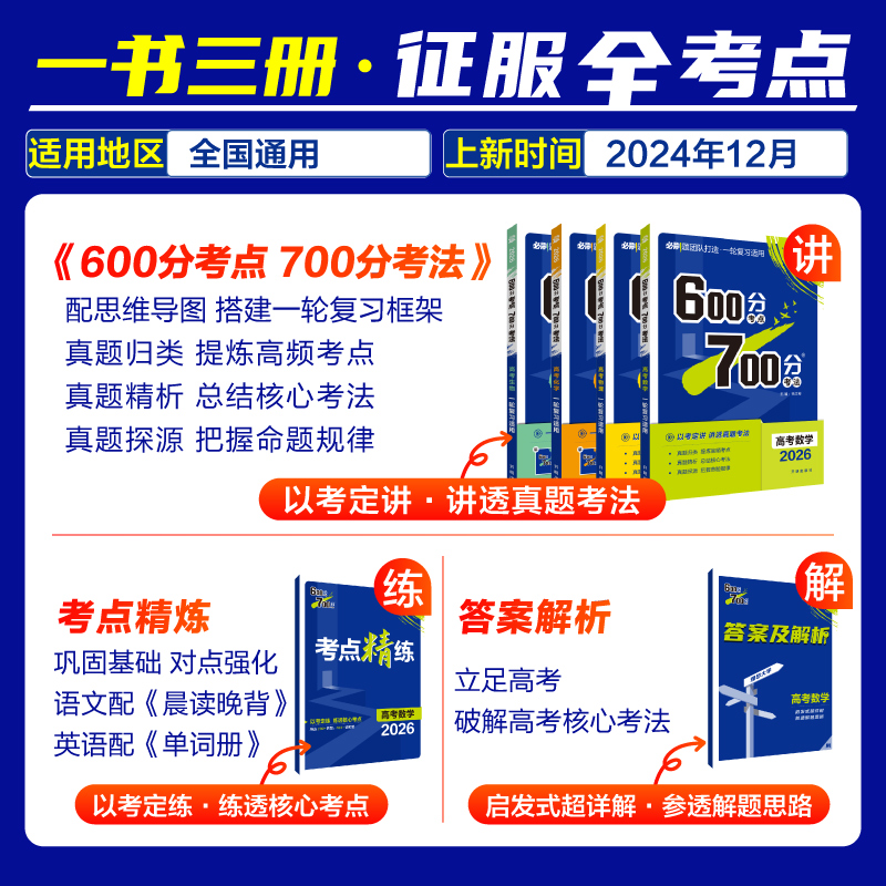 2026版 高三高考一轮二轮复习资料高考真题卷必刷题合订本 高考必刷题600分考点700分考法数学语文英语物理化学政治历史生物地理A版