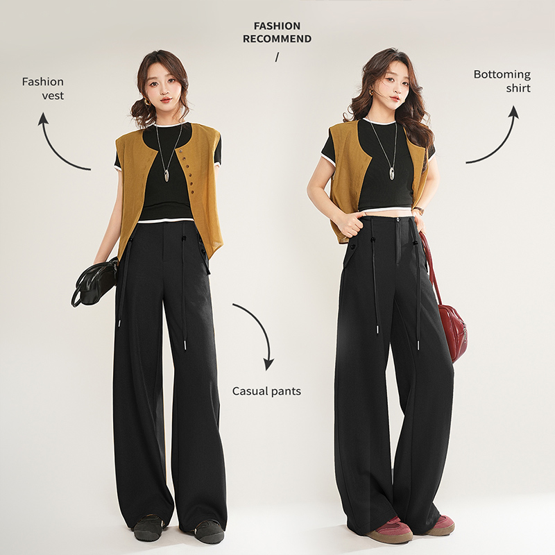 休闲裤 白鹿语立体口袋拖地长裤 抽绳橡筋腰优雅减龄女式 时尚 25春款