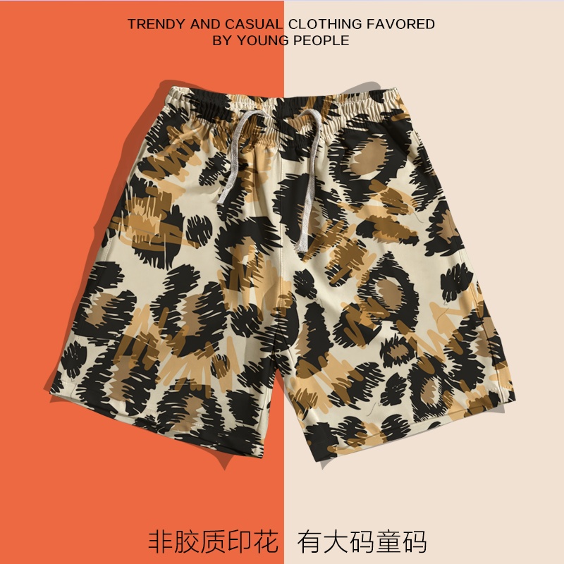 豹纹多巴胺短裤 宽松大码 男女夏季 休闲印花沙滩裤 潮流 五分裤 美式