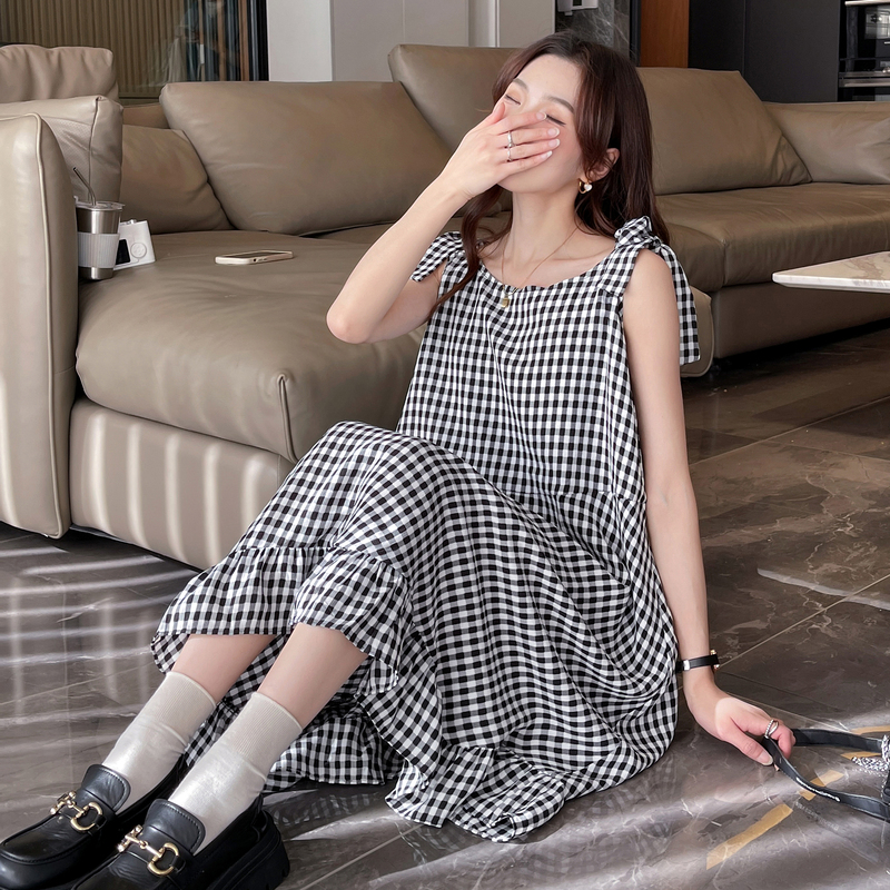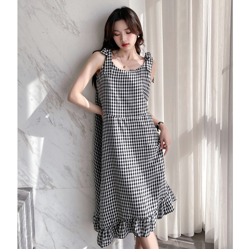 复古双层裙摆格纹分割短款 新款 吊带连衣裙 CICI2025年秋季 BANANA