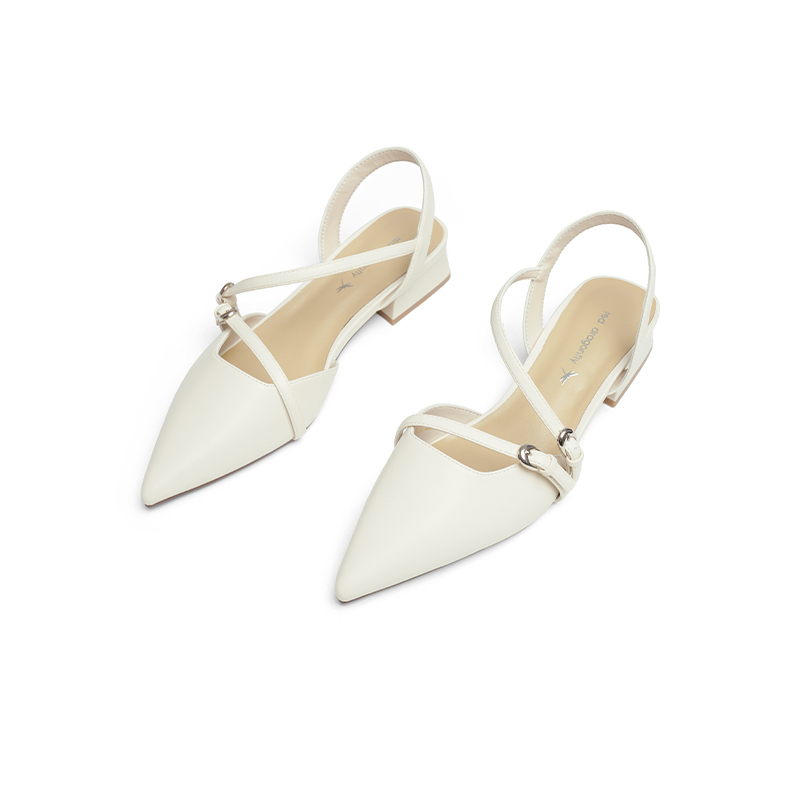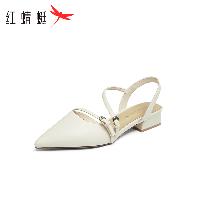女2025夏季 仙女风平底鞋 新款 法式 浅口尖头后空单鞋 红蜻蜓包头凉鞋