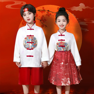 六一表演服装 儿童演出服中国风夏女童马面裙国潮男童诗歌朗诵班服