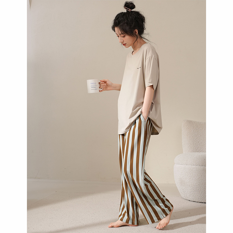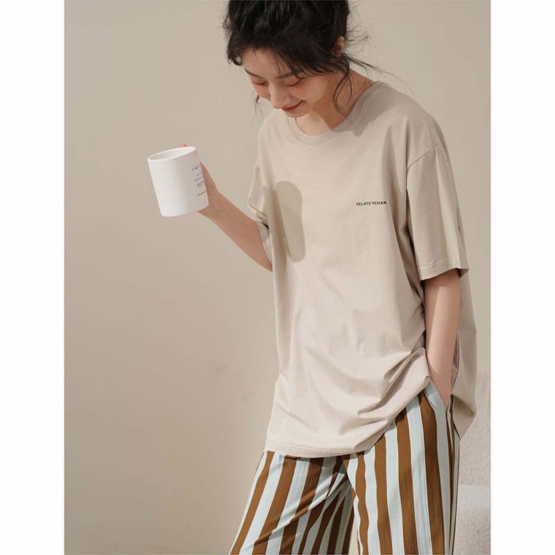 简约女士家居服套装 宽松新款 果壳冰丝睡衣女春秋款 Gukoo