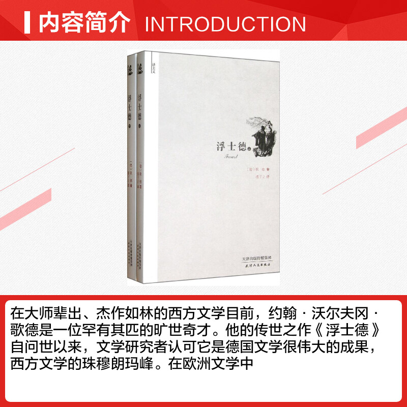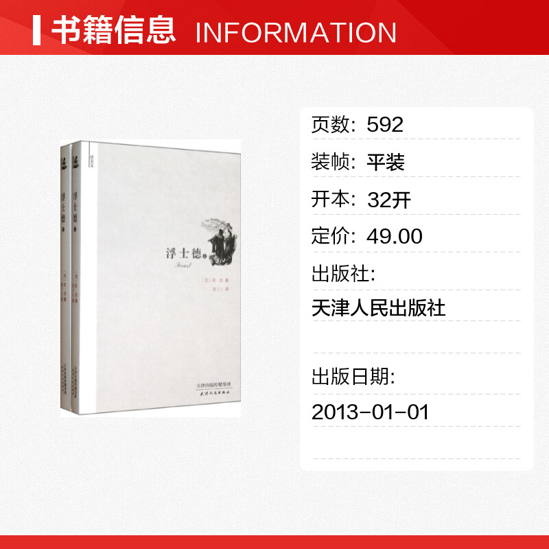 德 歌德;潘子立 社 浮士德 新华 天津人民出版 上下册 小说文学社科书畅销图书籍 译美文 中外名家原著世界文学名著经典