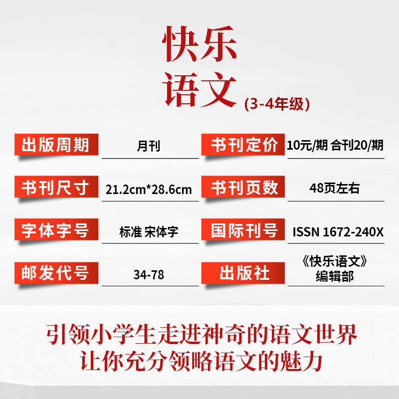 4年级 半年订阅 全国优秀少儿期刊 快乐语文杂志3 2025年全年 2025年3 2024年9 9月 适合三.四年级学生阅读 12月刊