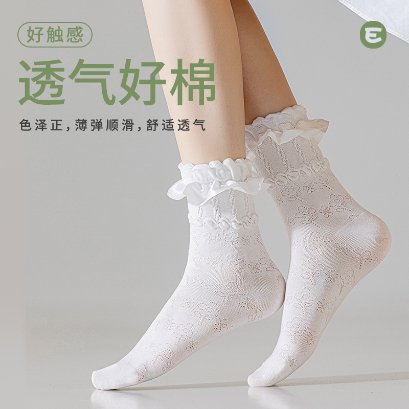 白色蕾丝袜子女中筒夏季 长筒袜夏天 洛丽塔芭蕾风花边袜搭配小皮鞋