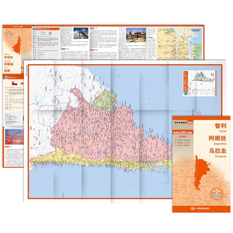 世界分国地图 乌拉圭地图 南美洲 旅游交通 中英外文对照大幅面撕不烂便携实用 智利地图 国内出版 阿根廷地图