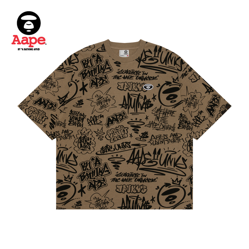 Aape春夏猿人刺绣街头涂鸦印花嘻哈潮流休闲宽松短袖 T恤1469XXM