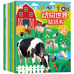 动物世界贴纸书全套6册儿童益智贴贴画卡通粘纸专注力训练2 6岁4幼儿园宝宝益智贴贴画早教玩具幼儿智力开发幼儿早教启蒙认知书