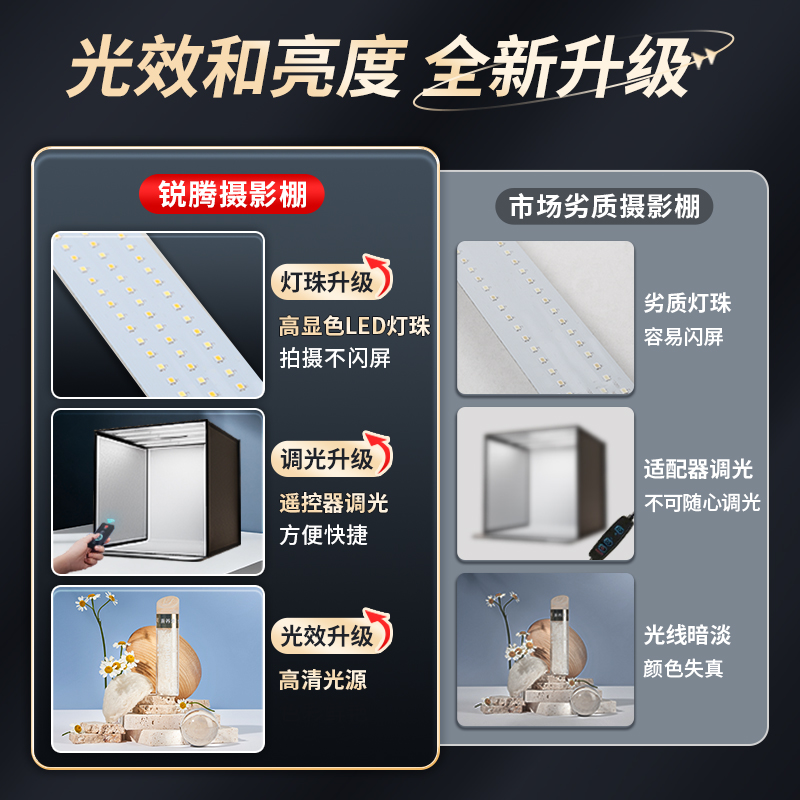 80CM摄影棚小型LED折叠产品拍照灯箱简易拍摄灯补光柔光箱图珠宝饰品电商静物专业照相摄影箱背景影棚小道具