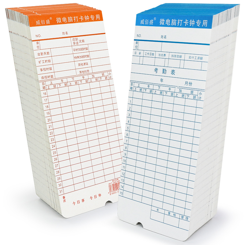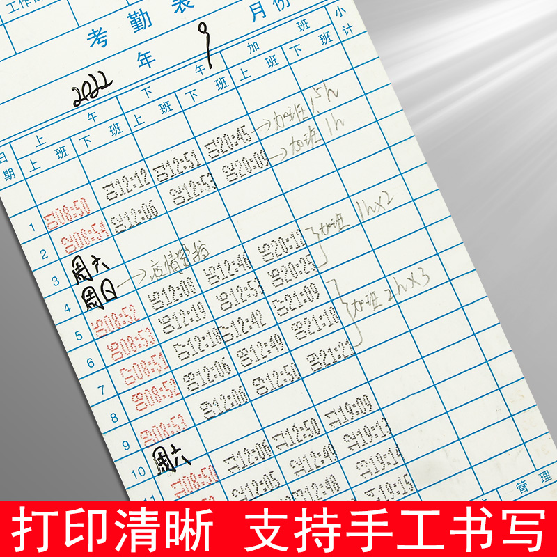 考勤卡打卡纸上班微电脑打卡钟打卡机神器卡片专用纸出勤签到上下班纸卡考勒卡纸质打勤员工打卡器考勤表卡纸