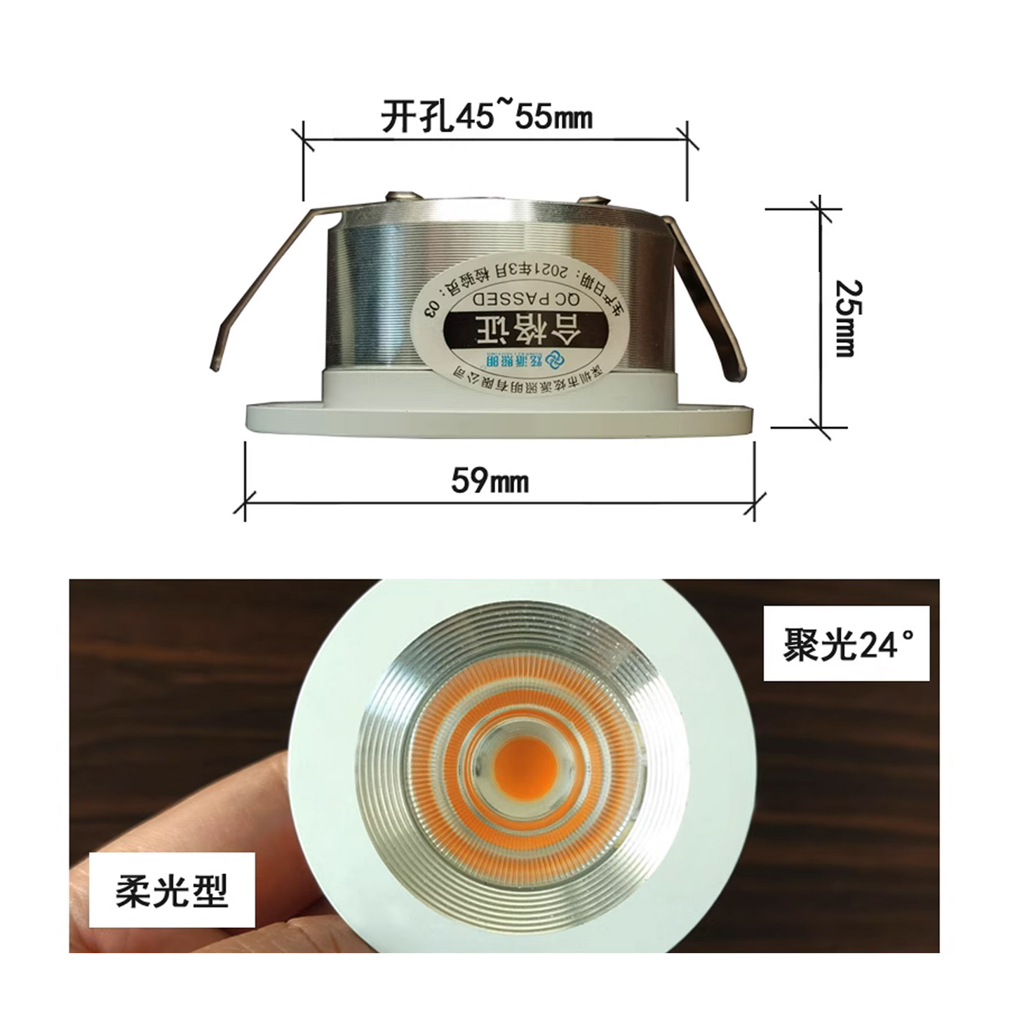 小尺寸筒灯3w嵌入式 迷你小射灯led 4cm展柜灯5cm小孔灯 开孔45