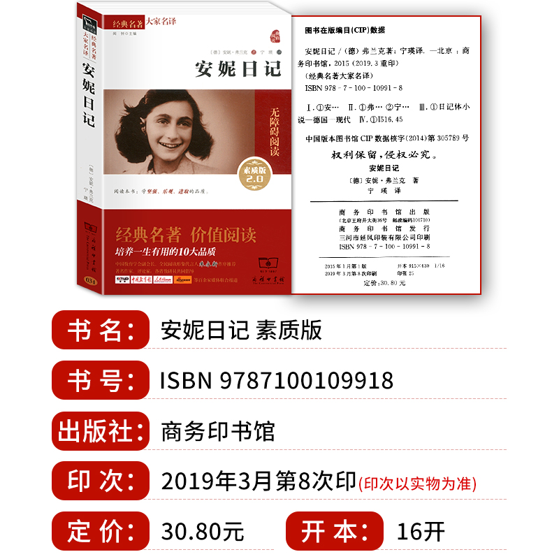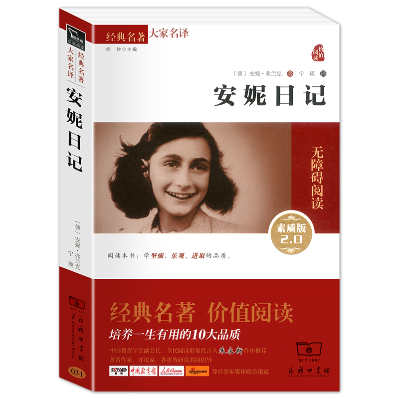 中小学生课外阅读书籍无障碍阅读世界名著中小学生课外阅读经典 正版 2.0大家名作全译本无删减版 安妮日记素质版 名著商务印书馆 现货