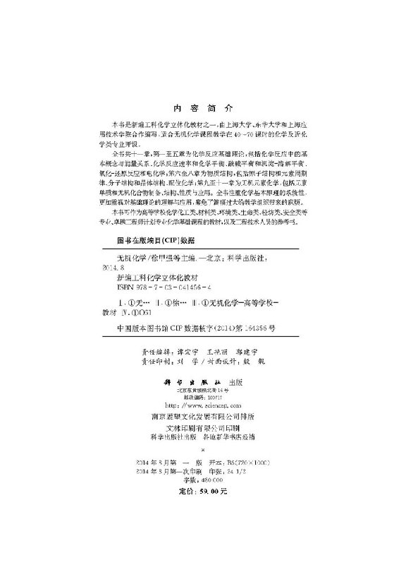 安保礼 邢彦军 无机化学徐甲强 康诗钊