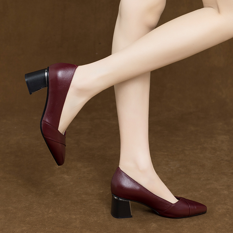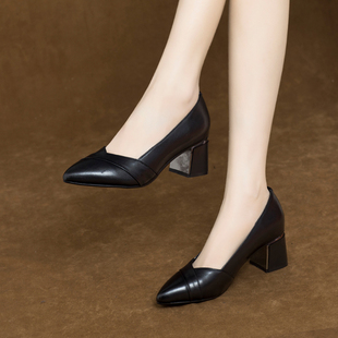 秋季 中跟真皮鞋 女鞋 职业气质粗跟单鞋 春秋 尖头浅口高跟鞋 2025新款