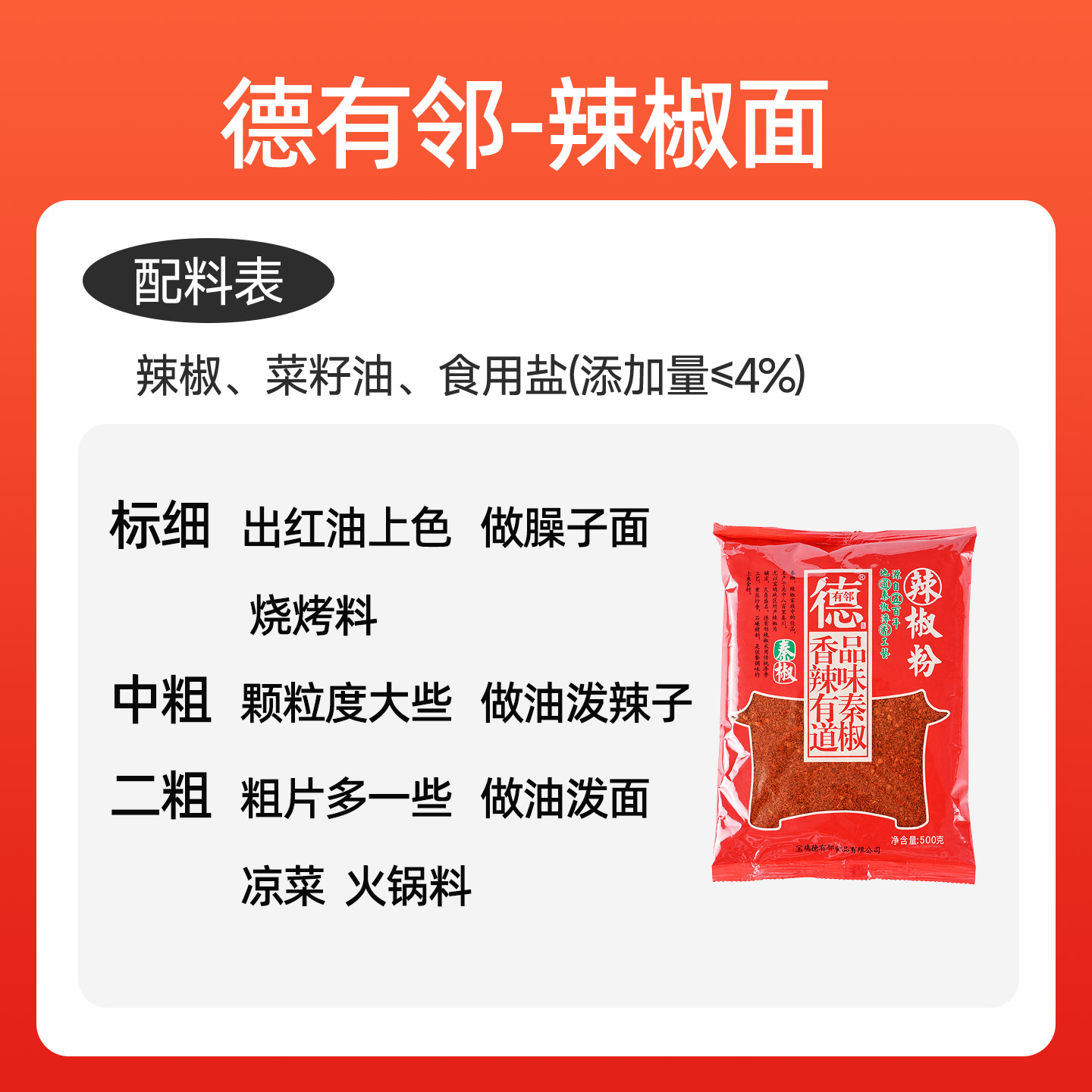 德有邻陕西正宗秦椒辣椒面微辣不辣 特香油泼辣子石碾粗细纯商用