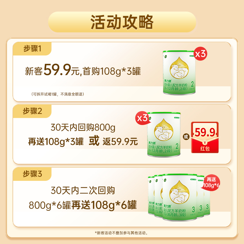 3罐 108g 美力源官方旗舰店1段婴儿配方羊奶粉低敏0 6个月罐装