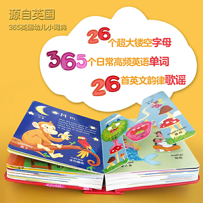 童书 英文韵律歌谣 365英国幼儿小词典:英国皇家校长编著 在绘本情景中认知英语单词 立体字母 幼儿英语启蒙书 当当网正版
