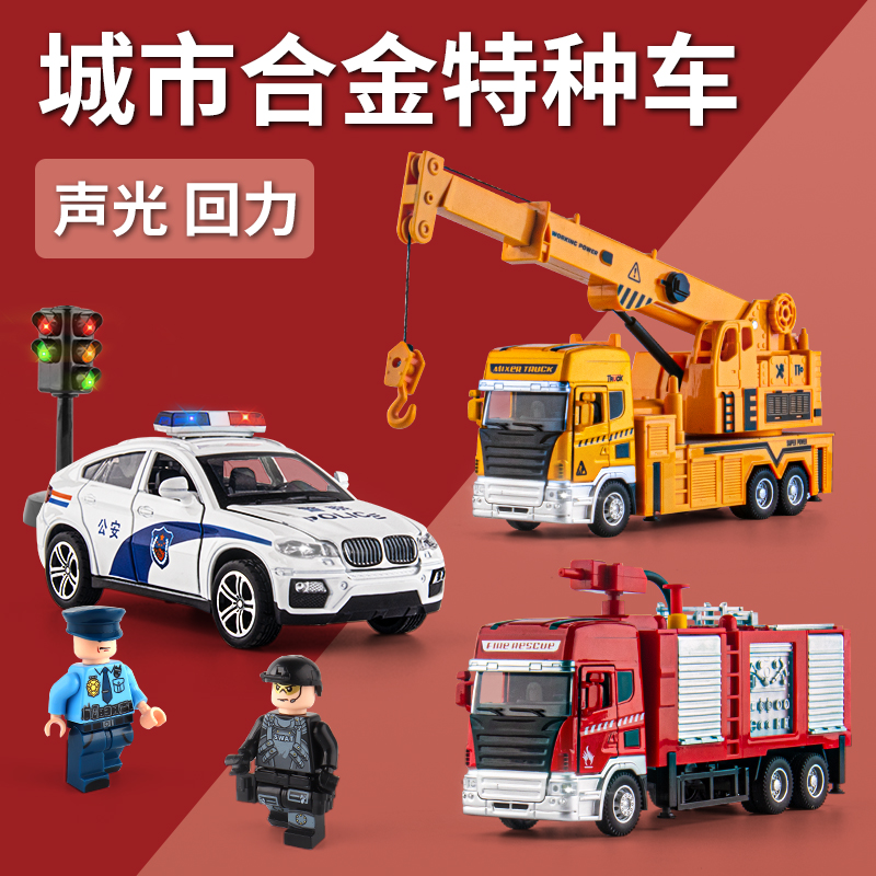 儿童玩具车警车救护车合金车模礼盒套装 小汽车模型宝宝男孩消防车