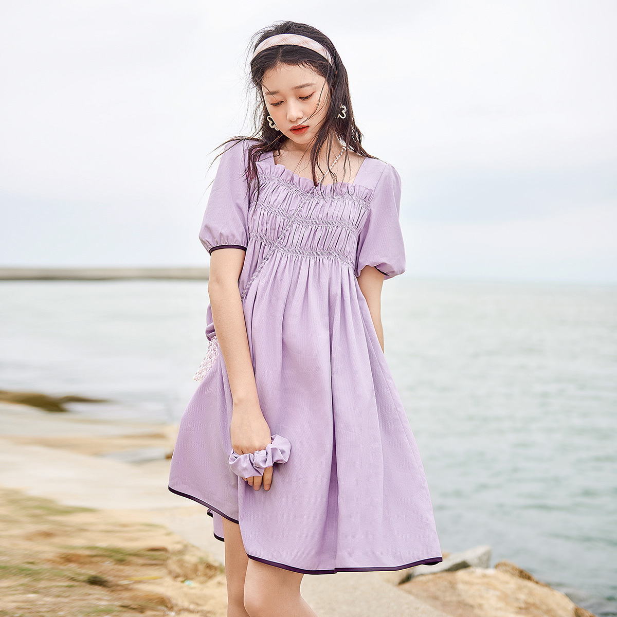百搭淑女风收腰拼接A字裙中长裙 新款 Vero Moda连衣裙女2025秋季