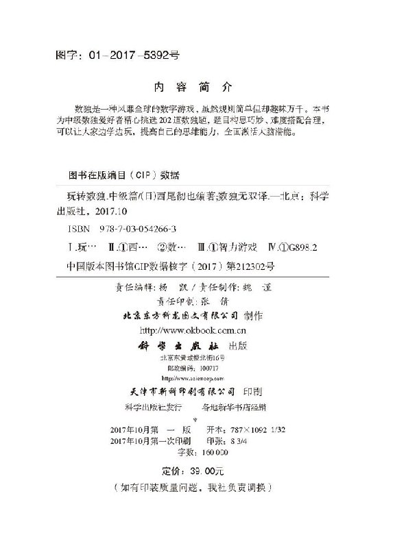 科学出版 正版 数独无双译 玩转数独中级篇 社 现货