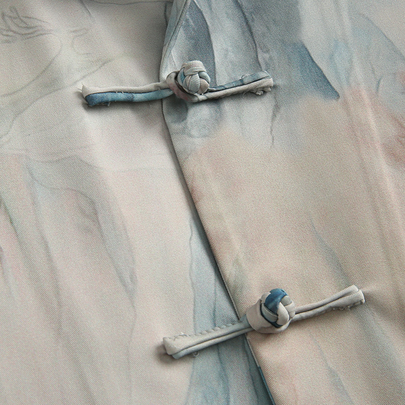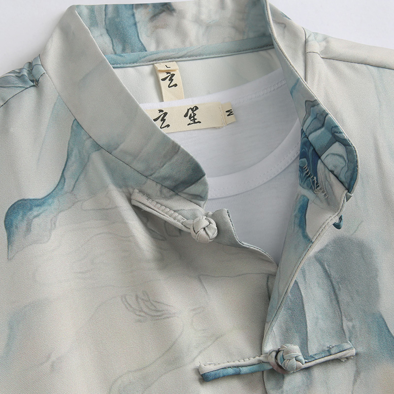 宽松时尚 山水原创印花夏新款 中国风复古盘扣上衣 男潮短袖 玄笙唐装