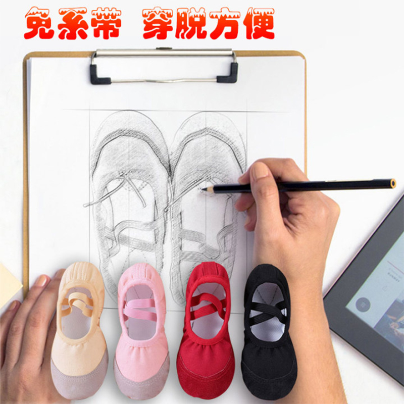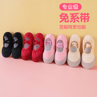 免系带中国舞成人跳舞芭蕾舞鞋 儿童舞蹈鞋 软底女童红色演出练功鞋