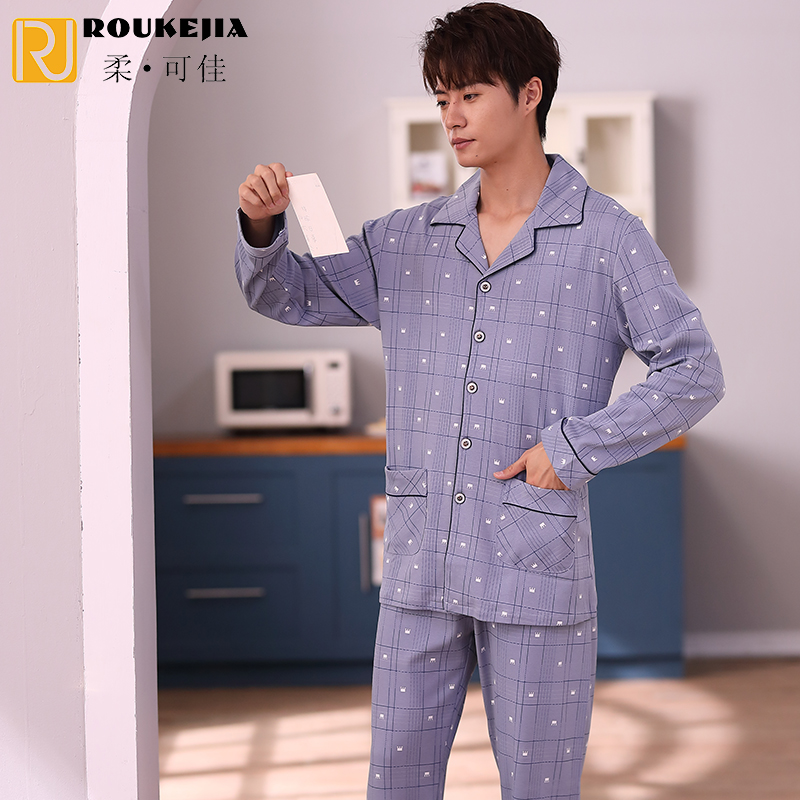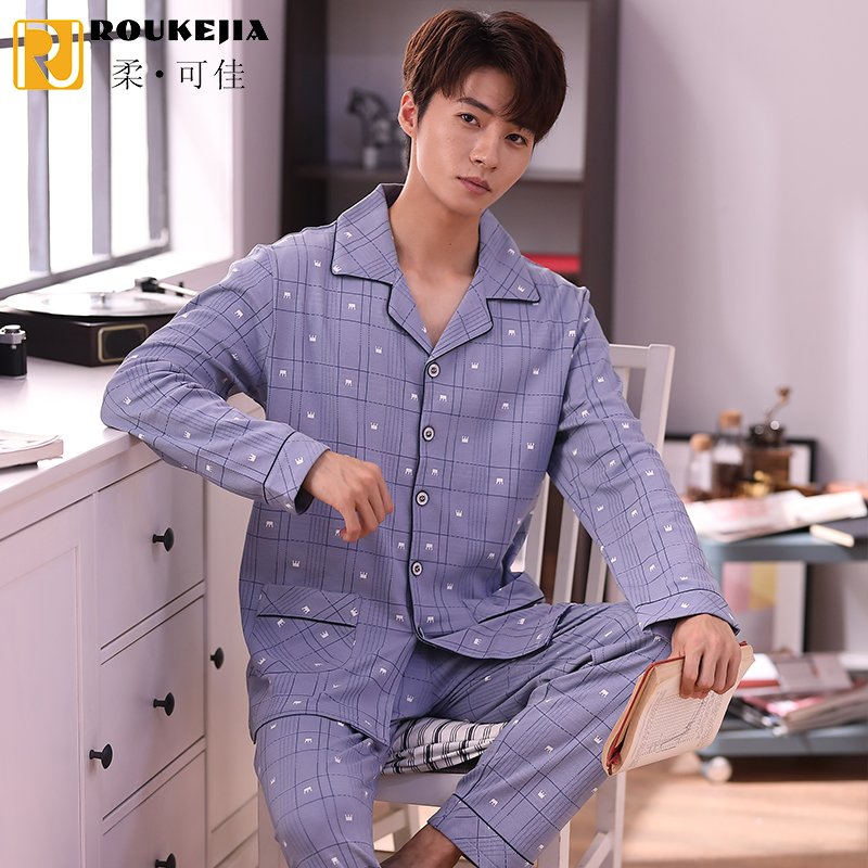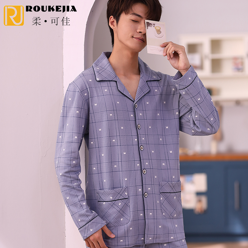 全棉男家居服套装 柔可佳秋冬新款 卡通宽松秋冬款 睡衣纯棉长袖 男士