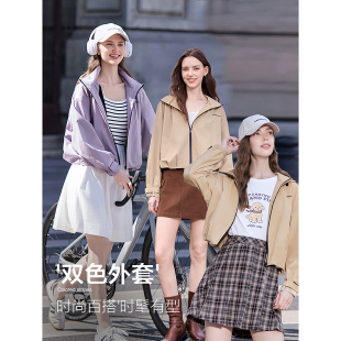 宽松连帽夹克 新款 betu百图百搭通勤风拉链短款 外套女2025年秋季
