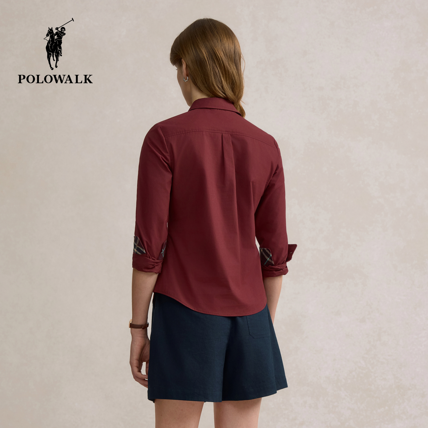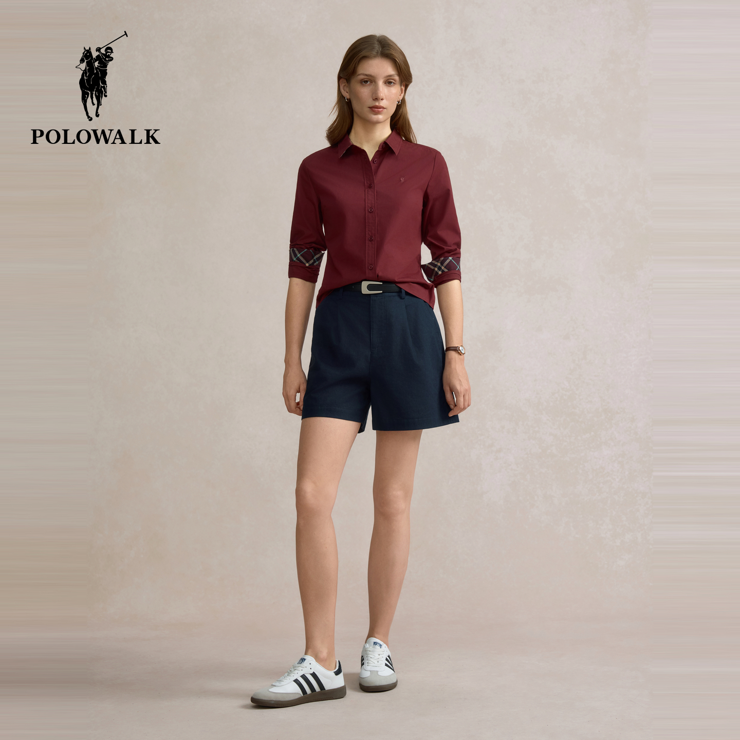 长袖 衬衫 2025秋季 翻领韩版 POLOWALK女式 新品 收腰上衣 100%纯棉