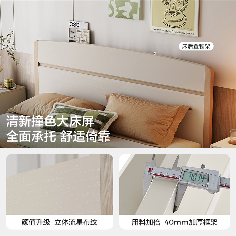 林氏家居卧室家用床1米5单人床现代简约小户型齐边床床架方满系列