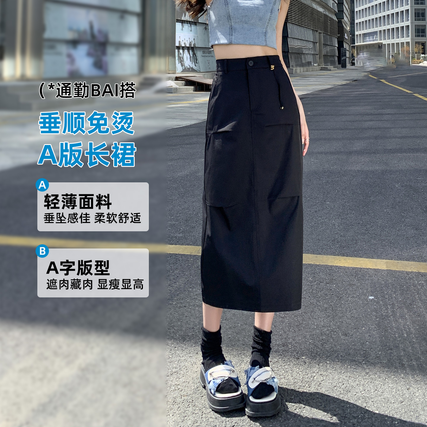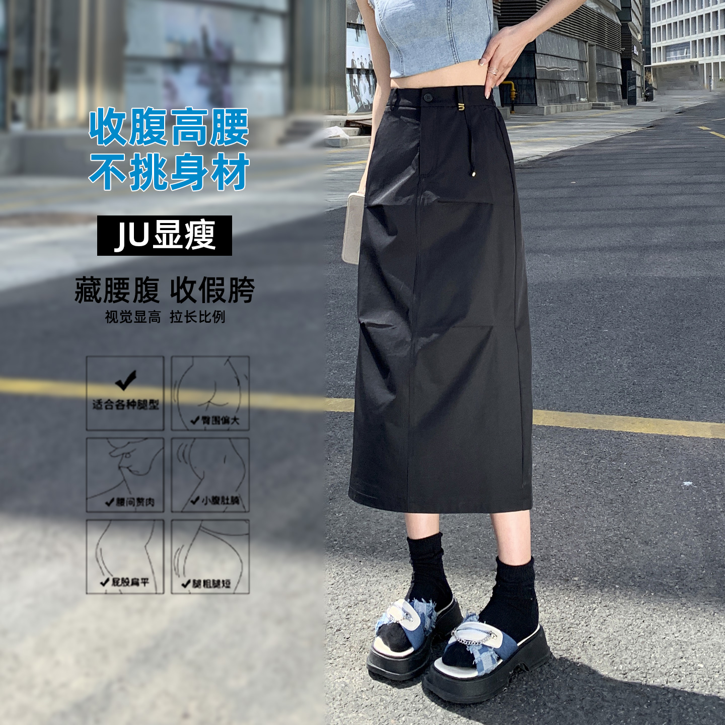 直筒包臀一步裙开叉职业正装 2025新款 黑色中长裙 半身裙女秋季 西装
