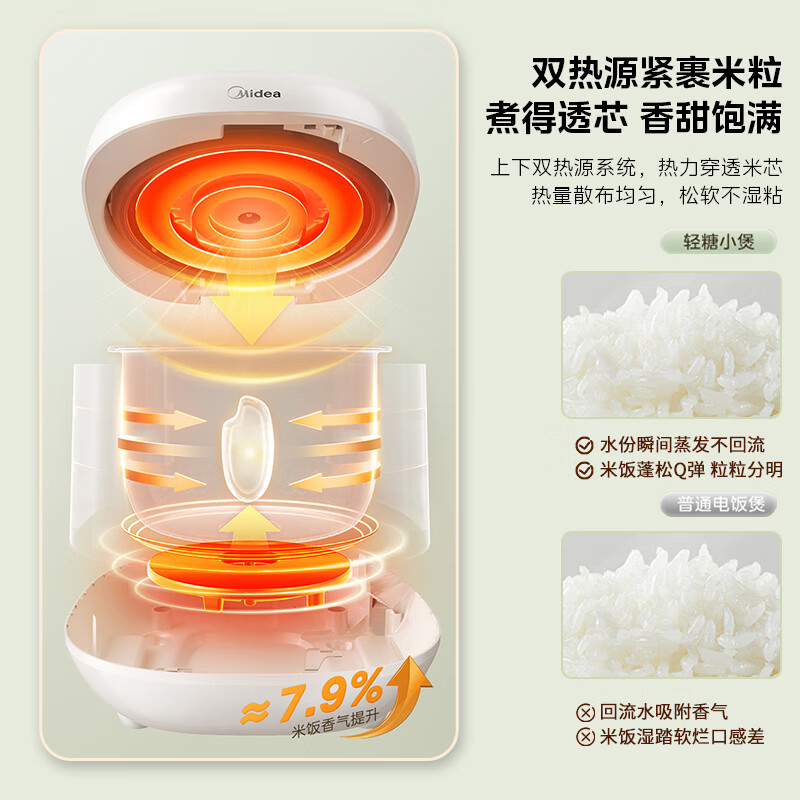 美 电饭锅3到4人华凌电饭煲家用小型1到2到3人煮饭锅3升2025新款