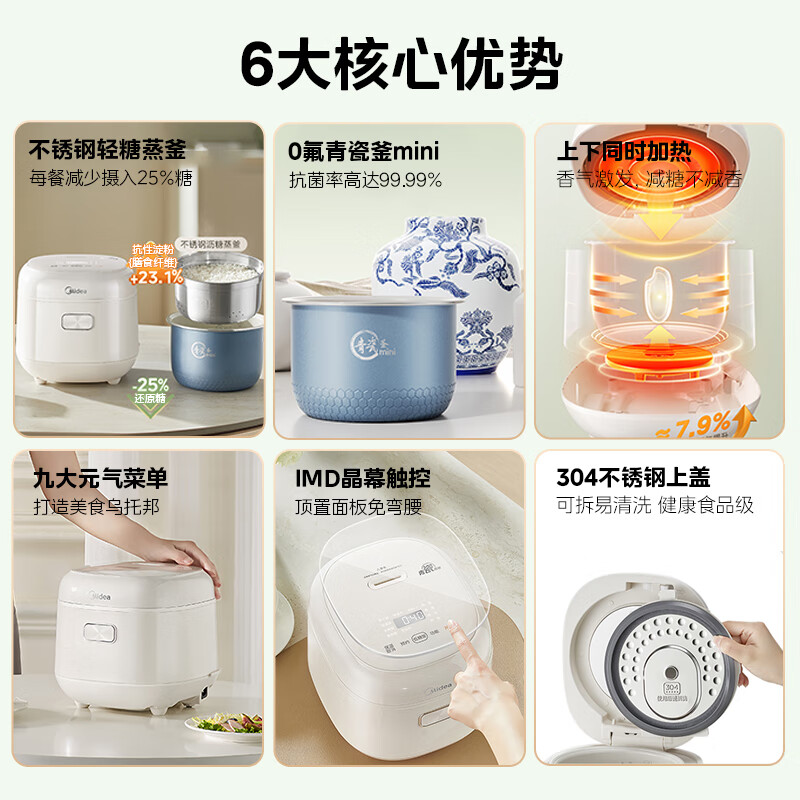 美 电饭煲政府补贴家用1到2人3宿舍4小型迷你电饭锅内胆官方正品