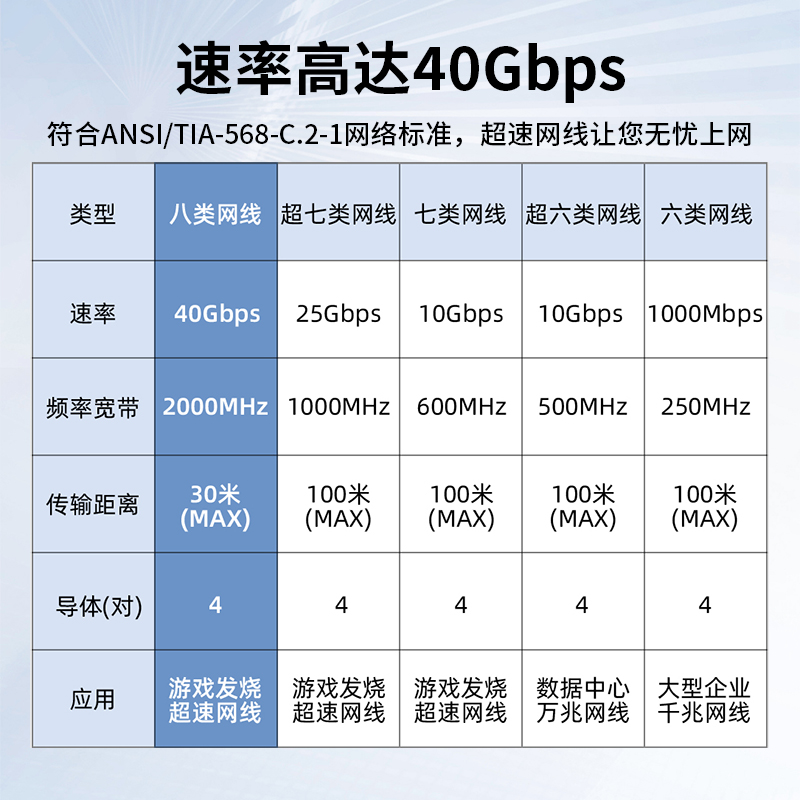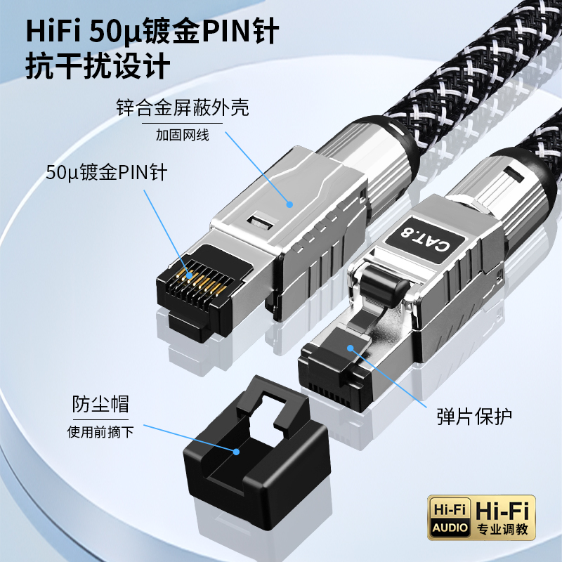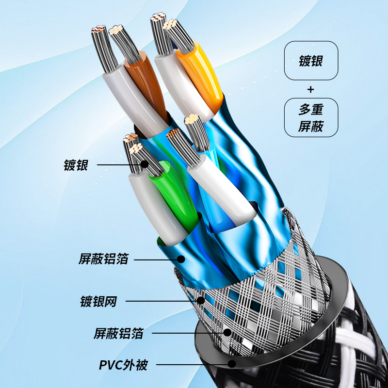 镀银CAT8万兆八类网线高速千兆宽带家用电脑电竞网络路由器连接线