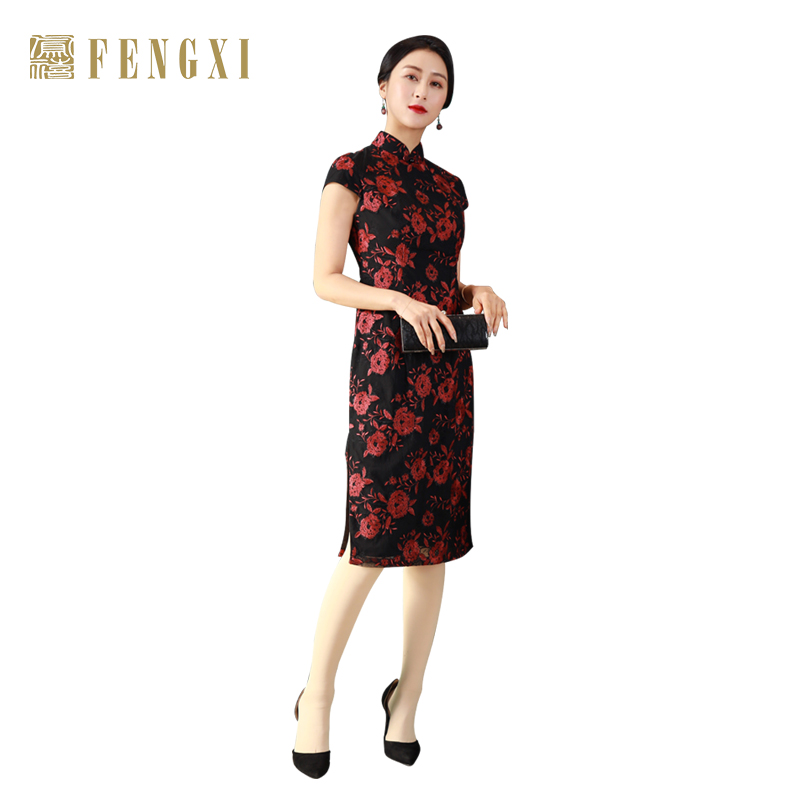 凤禧旗袍2025年新款 气质高端 春夏改良复古蕾丝花朵年轻妈妈中长款
