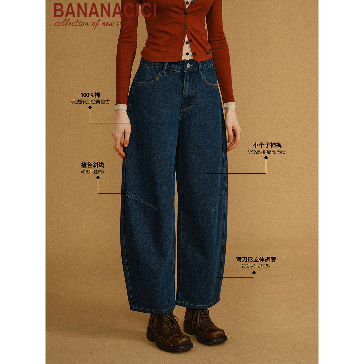 小个子九分裤 betu百图深蓝色宽松牛仔裤 新款 2025年秋季 女阔腿裤