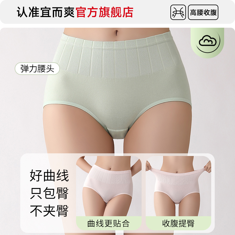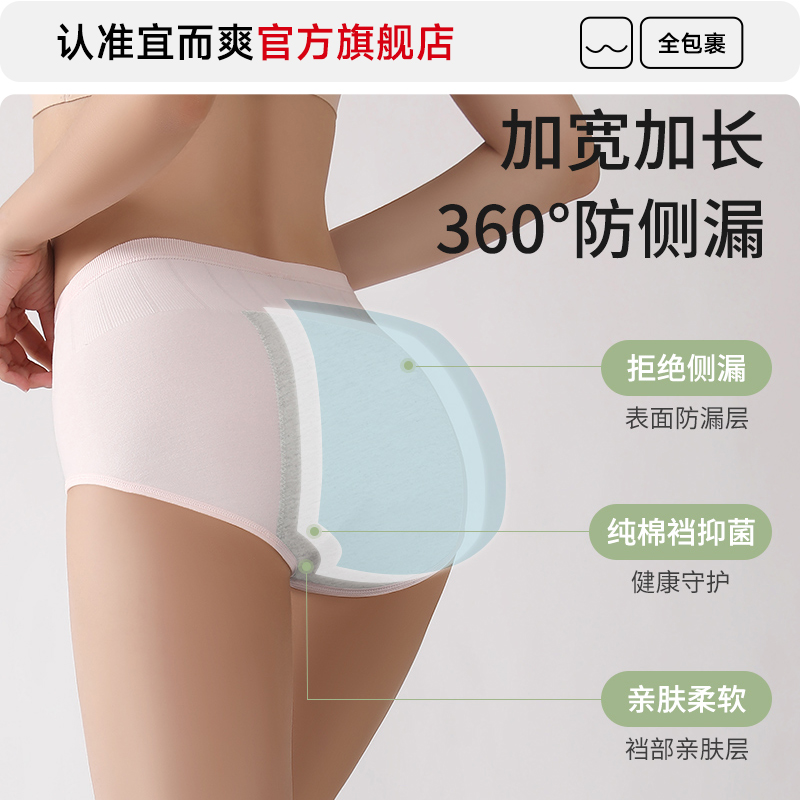 纯棉高腰收腹提臀姨妈卫生裤 宜而爽生理裤 女士月经防漏加宽三角裤