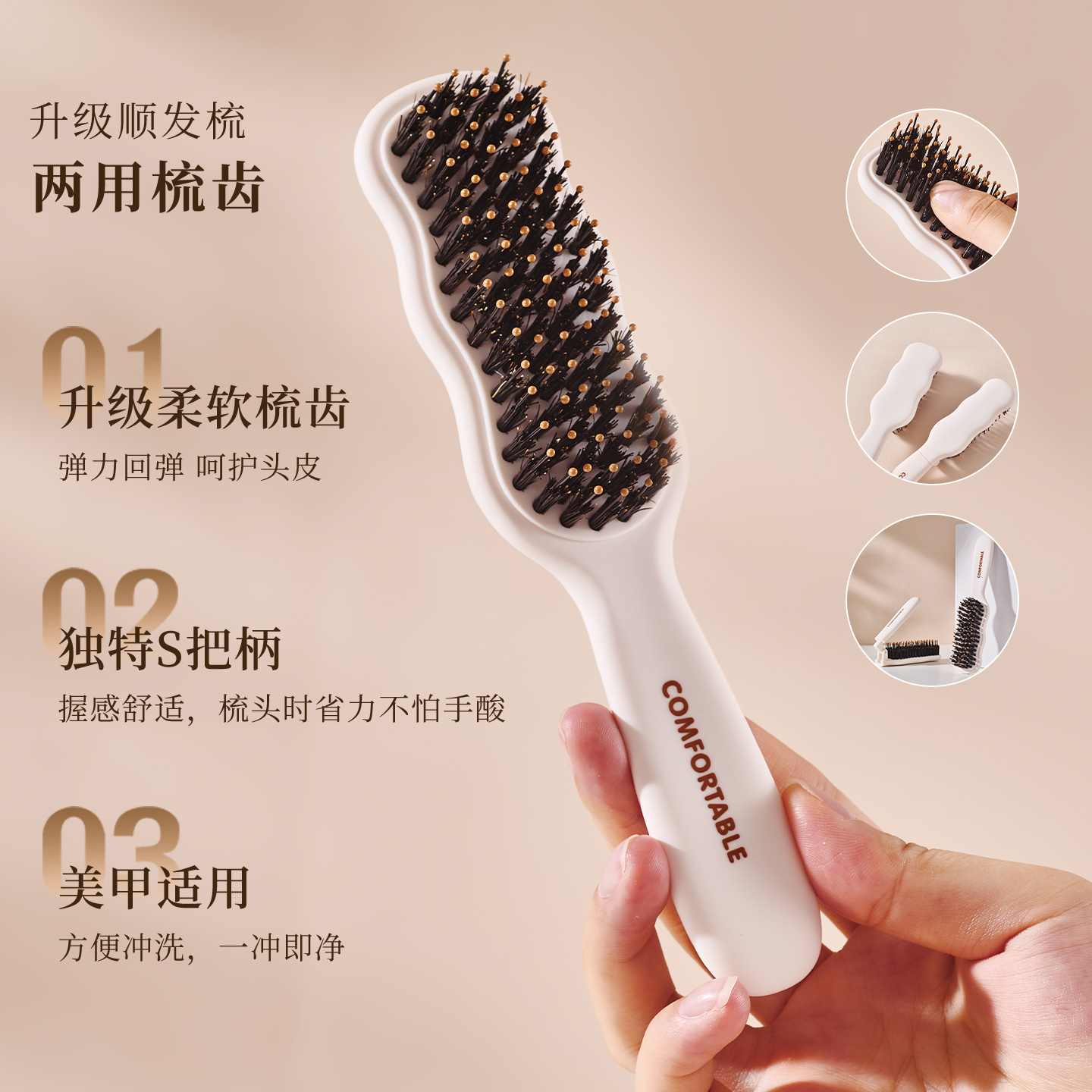小梳子随身便携女密齿梳可折叠猪鬃毛蓬松刘海造型迷你旅行发缝梳