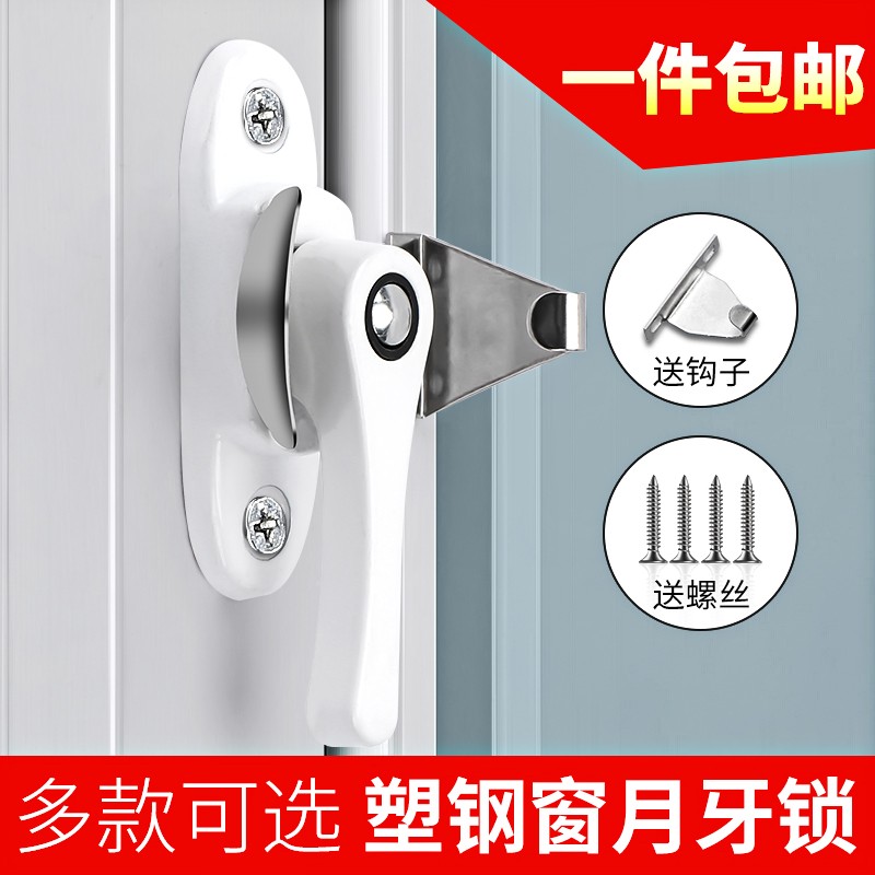 铝合金门窗月牙锁塑钢窗不锈钢窗户锁扣卡扣老式 推拉窗带钥匙通用