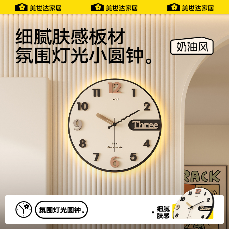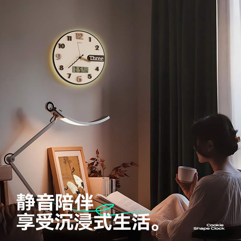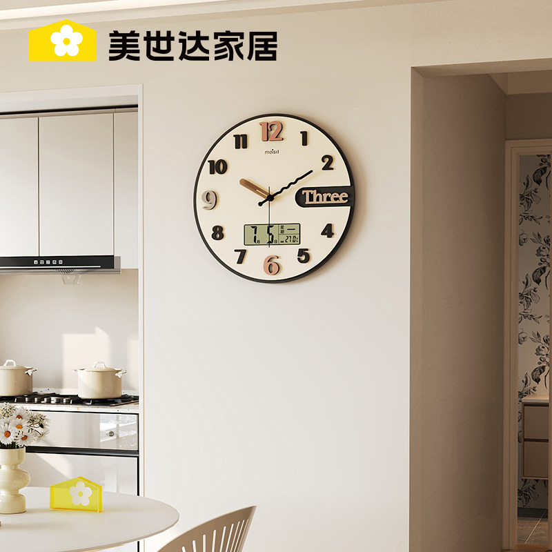 美世达万年历客厅挂钟2025新款 家用电子钟表免打孔时钟挂墙表静音