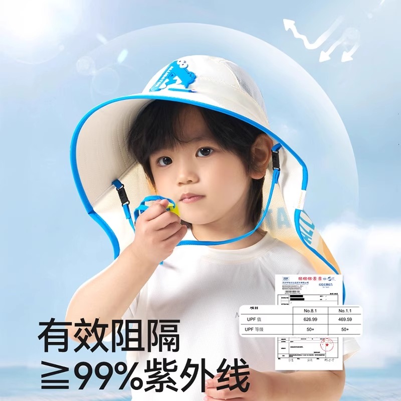 儿童防晒帽遮阳帽男童帽子夏季 女童渔夫帽宝宝太阳帽男孩沙滩 薄款