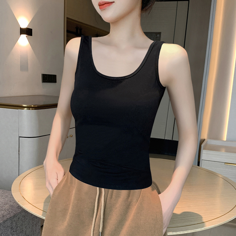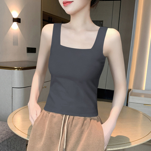 黑色吊带背心女内搭2025新款 打底上衣 网红美背宽肩带方领外穿无袖