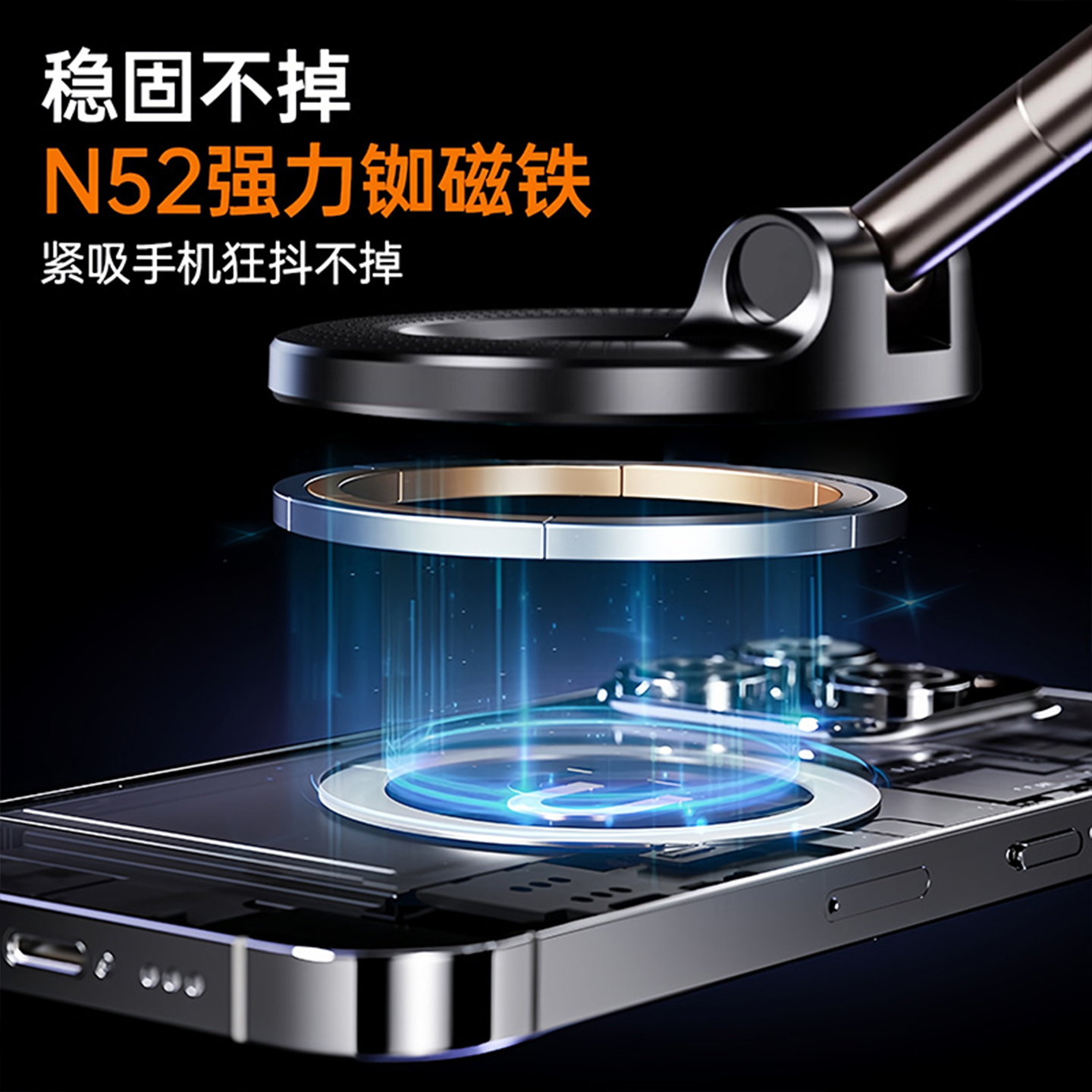 车载手机支架2025新款 真空吸附磁吸汽车导航专用吸盘车内用防抖支架多功能旋转折叠磁吸支桌面直播神器便携可