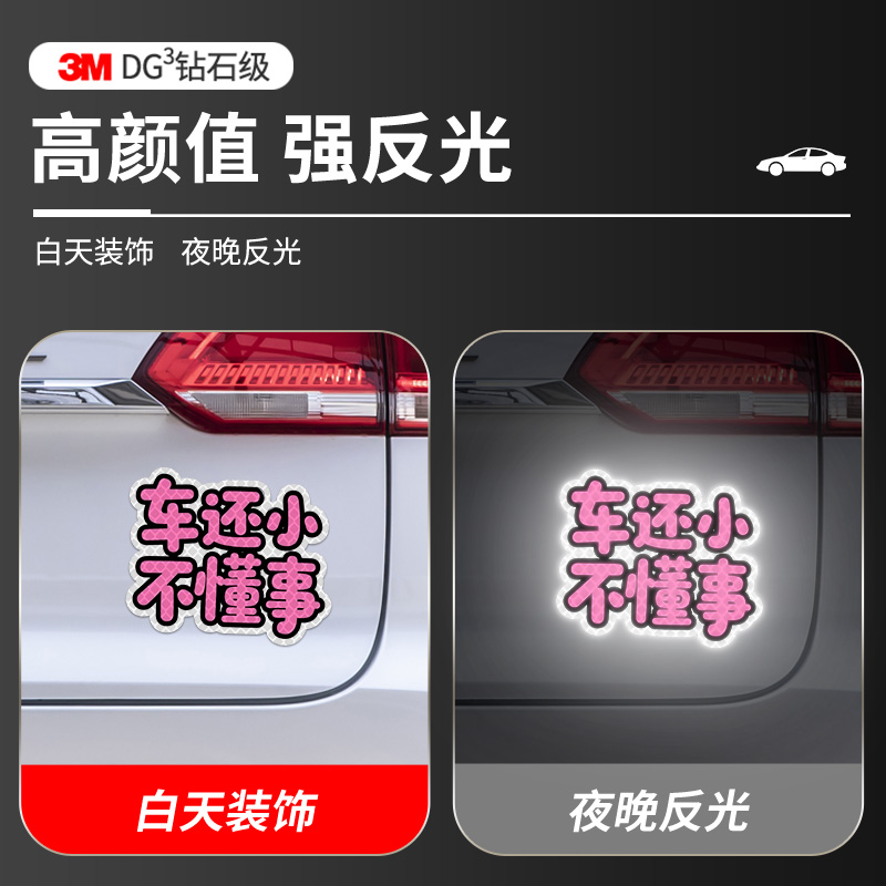 3M原创个性 饰防水反光车贴 汽车贴纸车还小不懂事电动摩托车头盔装