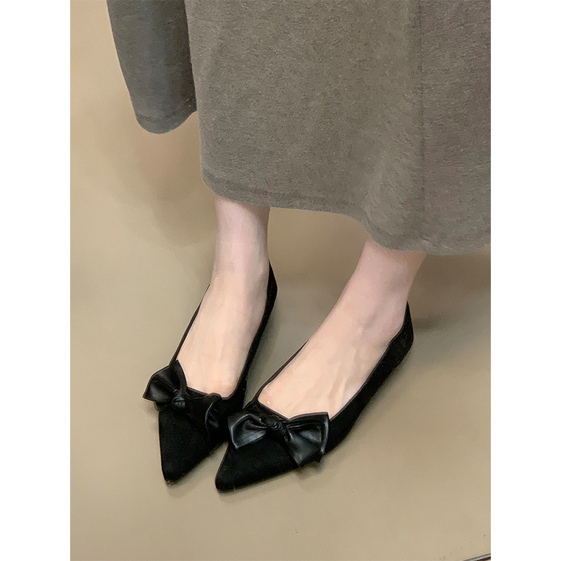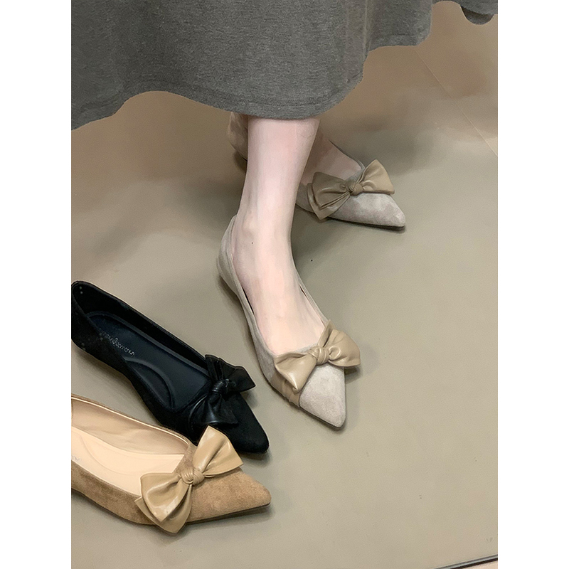 温柔风配裙子豆豆鞋 新款 女2024秋季 星期六真皮平底蝴蝶结浅口单鞋