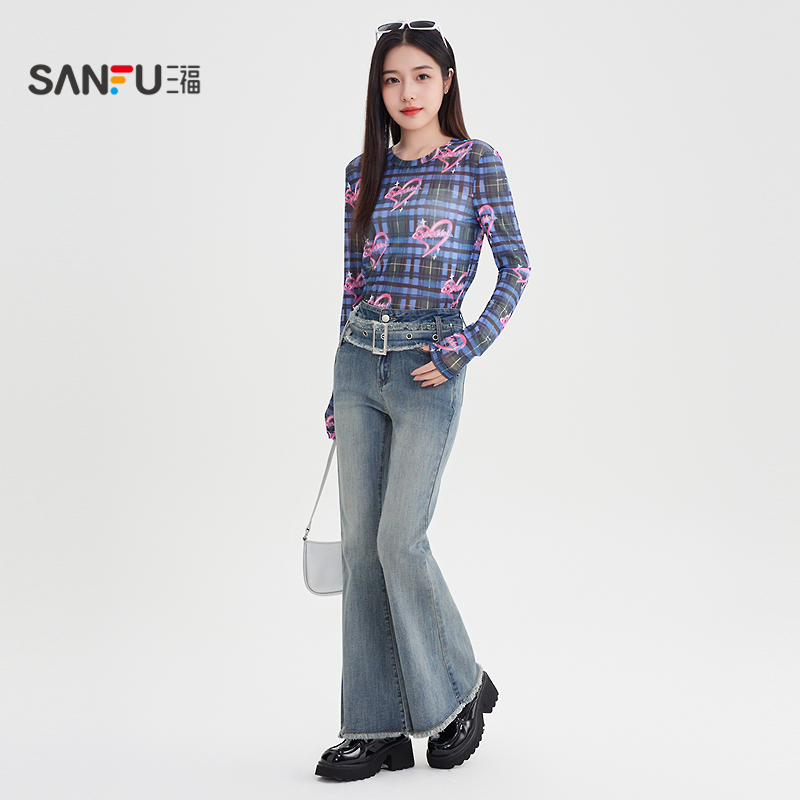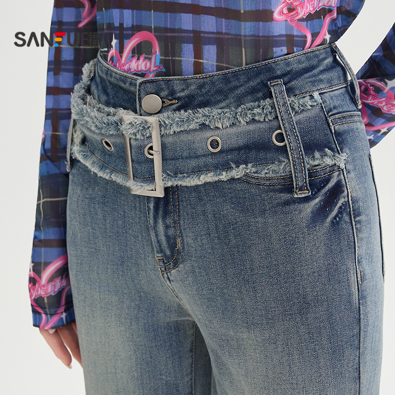 分割线显瘦直筒宽松长裤 热风女士直筒牛仔裤 时尚 新款 2025年秋季