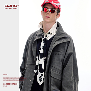 夹克高街宽松短款 潮牌痞帅拉链工装 外套 vintage棒球服男秋季 美式