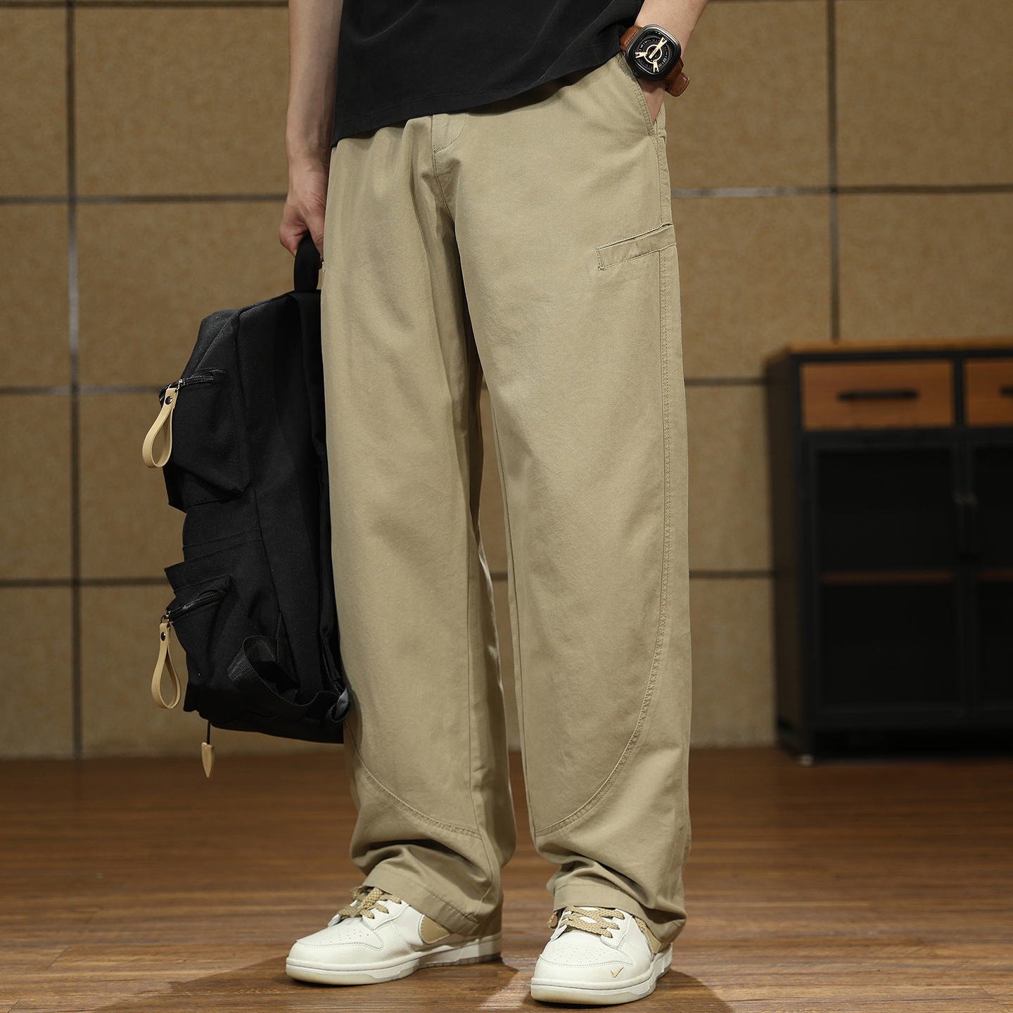 休闲裤 宽松卡其色裤 男2025夏季 直筒拼接长裤 子 新款 天丝莱塞尔美式