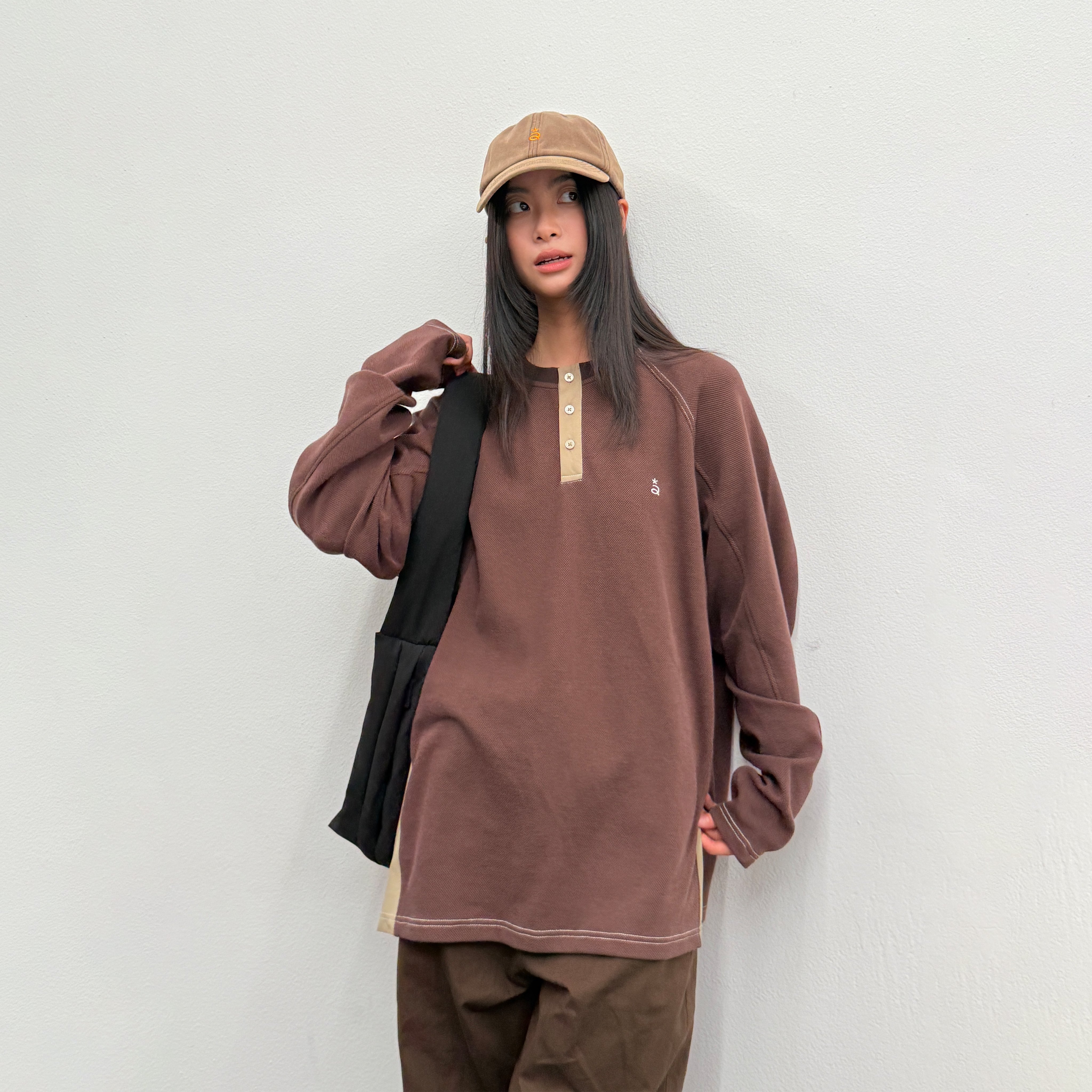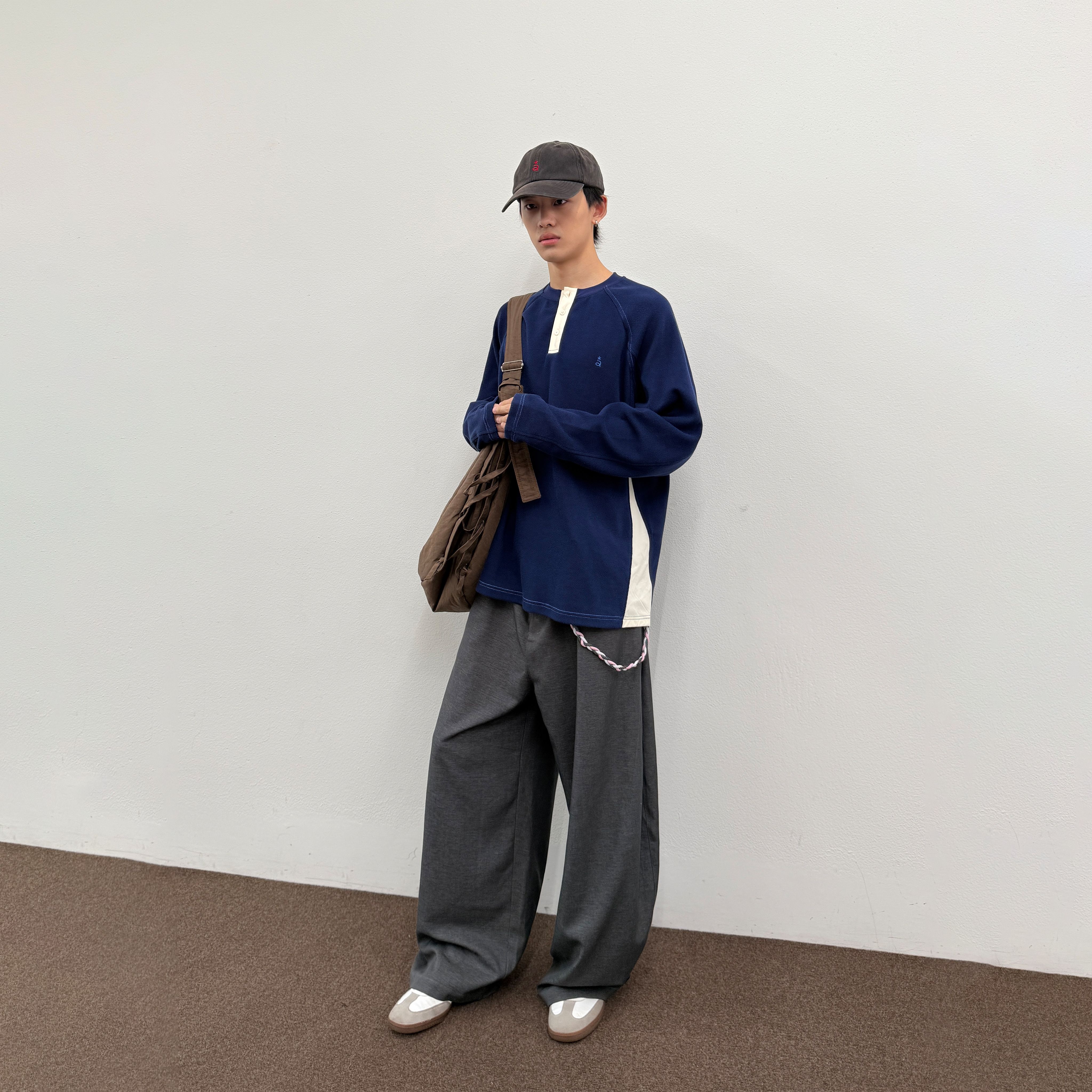 长袖 arch 撞色明线t恤亨利领上衣美式 男 咆哮野兽 roaringwild